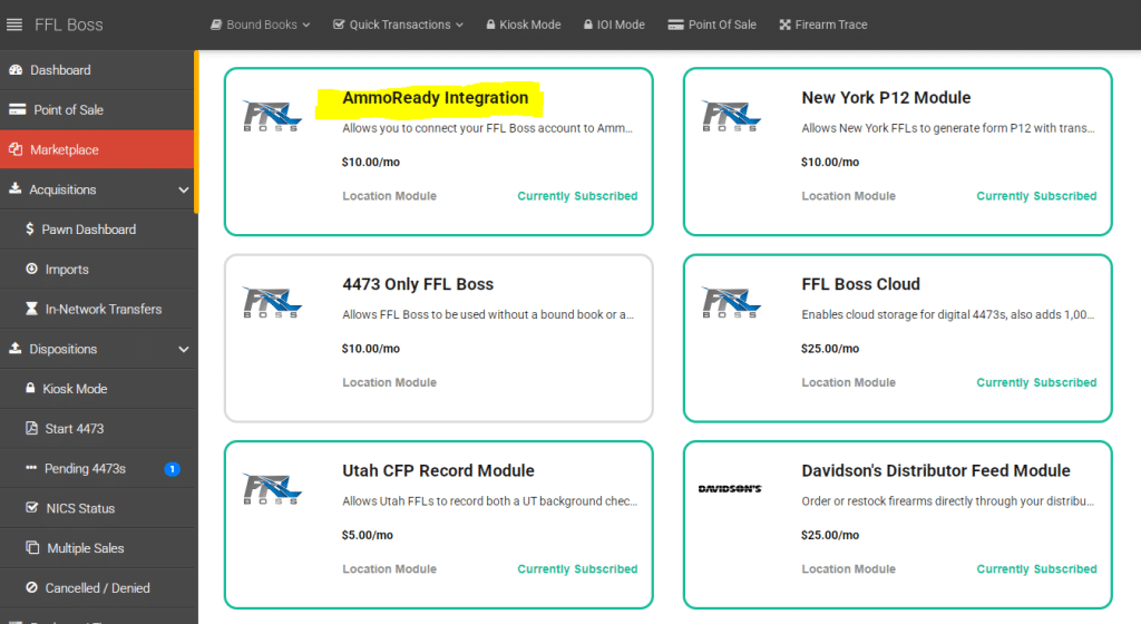 The AmmoReady add-on is available to add to your FFL Boss account in the FFL Boss Marketplace: