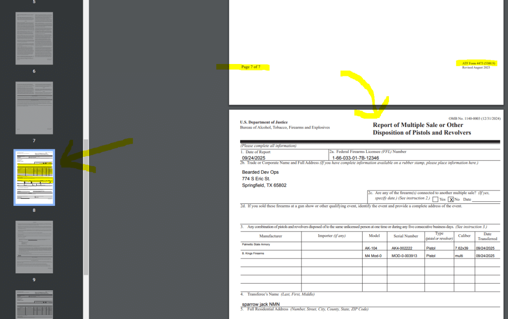 We save all supplemental ATF forms and documents from a transaction as one single PDF with multiple sales forms and other documentation electronically attached at the end of the PDF: