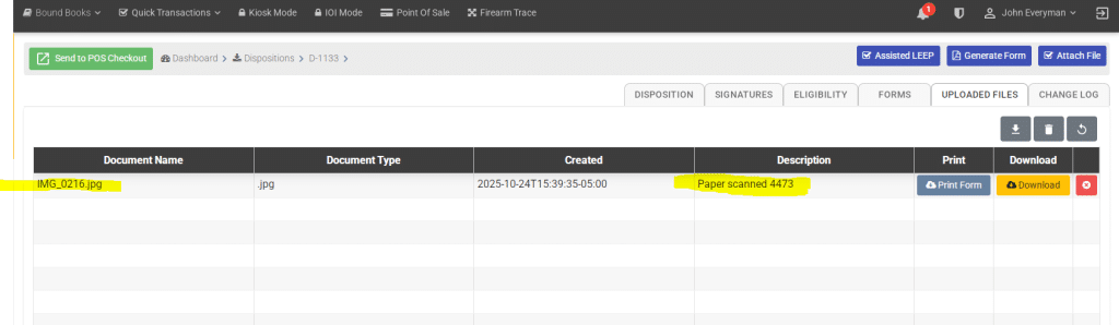 FFL Boss Cloud allows for Uploaded Files to be associated with any disposition, so scanned paper forms or any other documents you wish you associate with a transaction can be uploaded in compliance with conditions 1-15 as specified by ATF Ruling 2022-01: